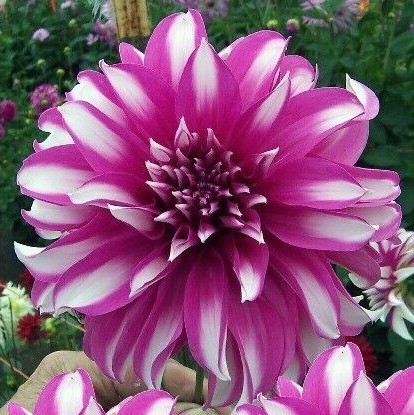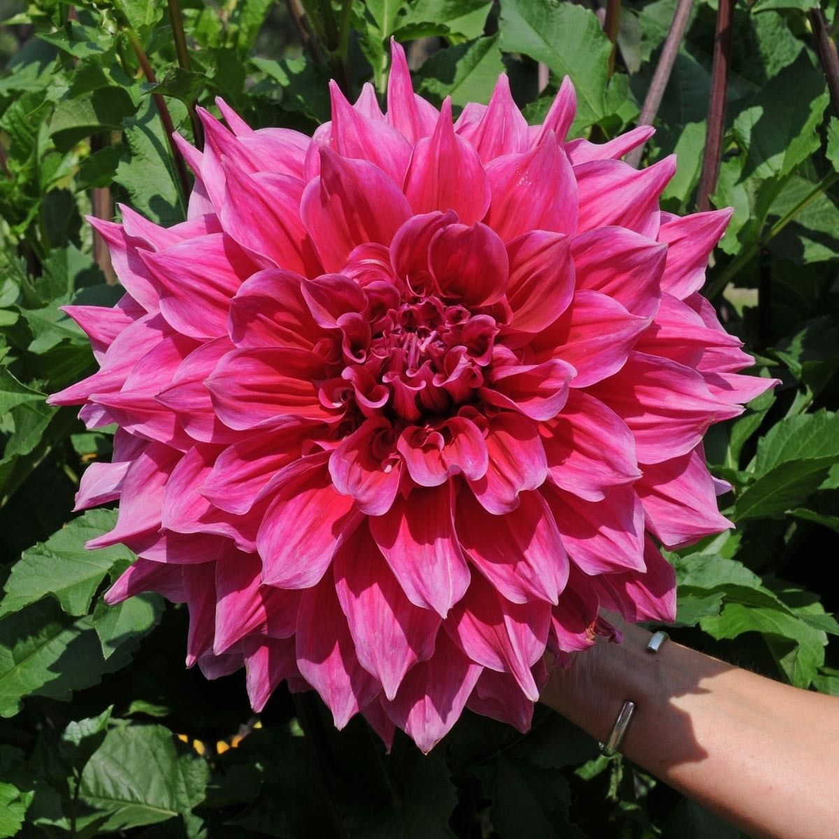 Декоративный, очень крупный цветок до 22 см в диаметре. Среднерослый до 1,2 м. Цветет с июля до заморозков.
